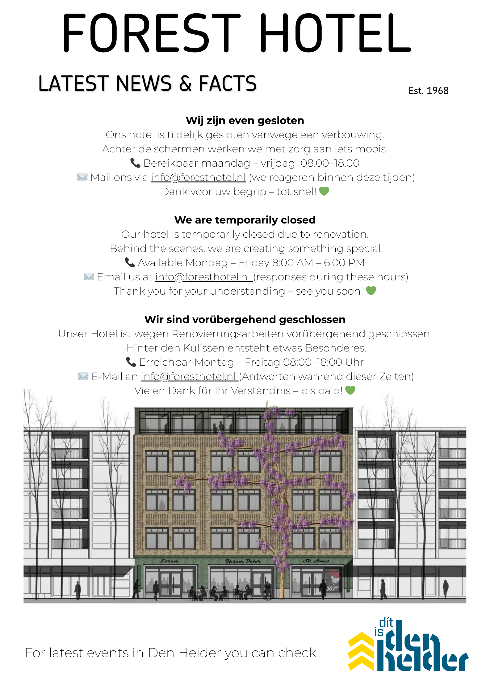 Direct tegenover het treinstation van Den Helder is het Forest Hotel al meer dan 50 jaar een begrip in Den Helder.